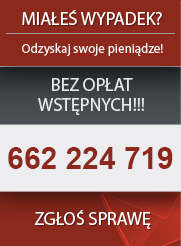 Zgłoś się do naszej Kancelarii w celu bezpłatnej analizy dokumentów powypadkowych. Pamiętaj, im prędzej zgłosisz się ze swoim problemem, tym szybciej uzyskamy dla Ciebie satysfakcjonujące odszkodowanie. My nie pobieramy opłat wstępnych. Prowizję pobieramy tylko raz, po zakończeniu działań i uzyskaniu odszkodowania. Prowizja zawsze jest w stałej wysokości, ustalonej przy podpisywaniu umowy.
